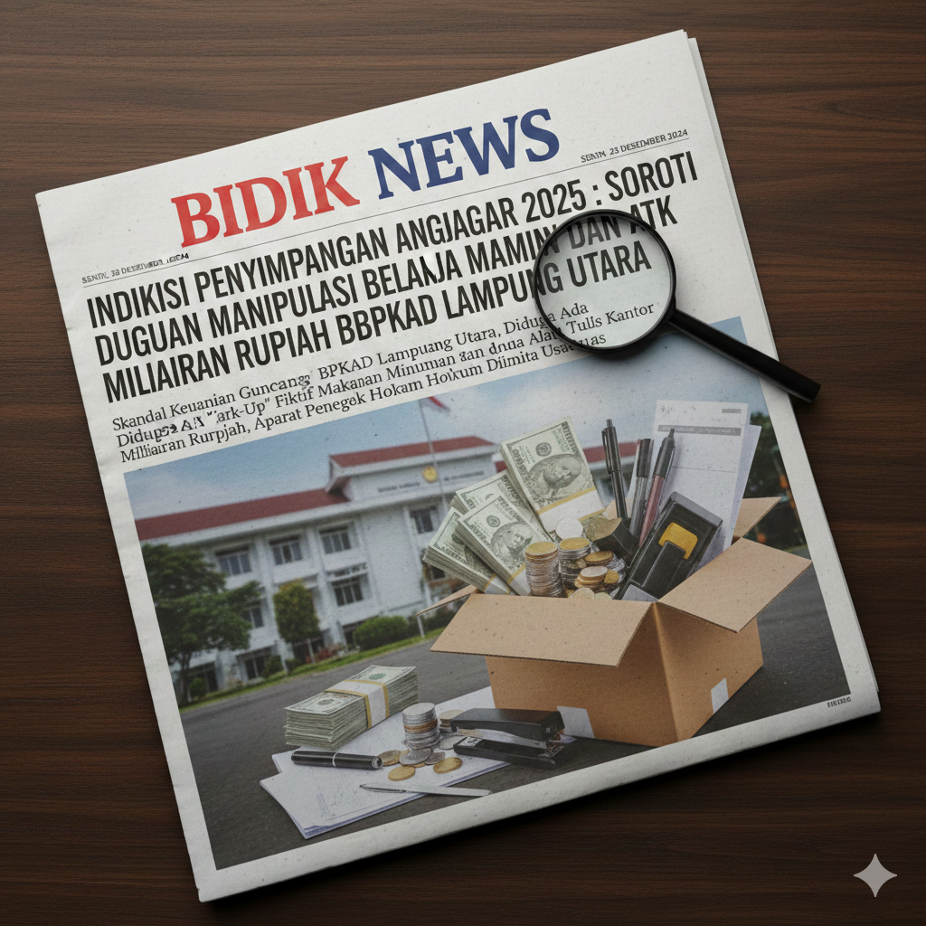 โKOTABUMI, LAMPUNG UTARA โ Tim Investigasi Bidik News bersama Asosiasi Pers Muda Lampung (APML) mengungkap temuan krusial terkait pengelolaan Tahun Anggaran 2025 pada Badan Pengelola Keuangan dan Aset Daerah (BPKAD) Lampung Utara. Berdasarkan analisis data serapan anggaran, ditemukan sejumlah pos belanja yang diduga kuat melanggar prinsip efisiensi dan regulasi pengadaan barang/jasa pemerintah.